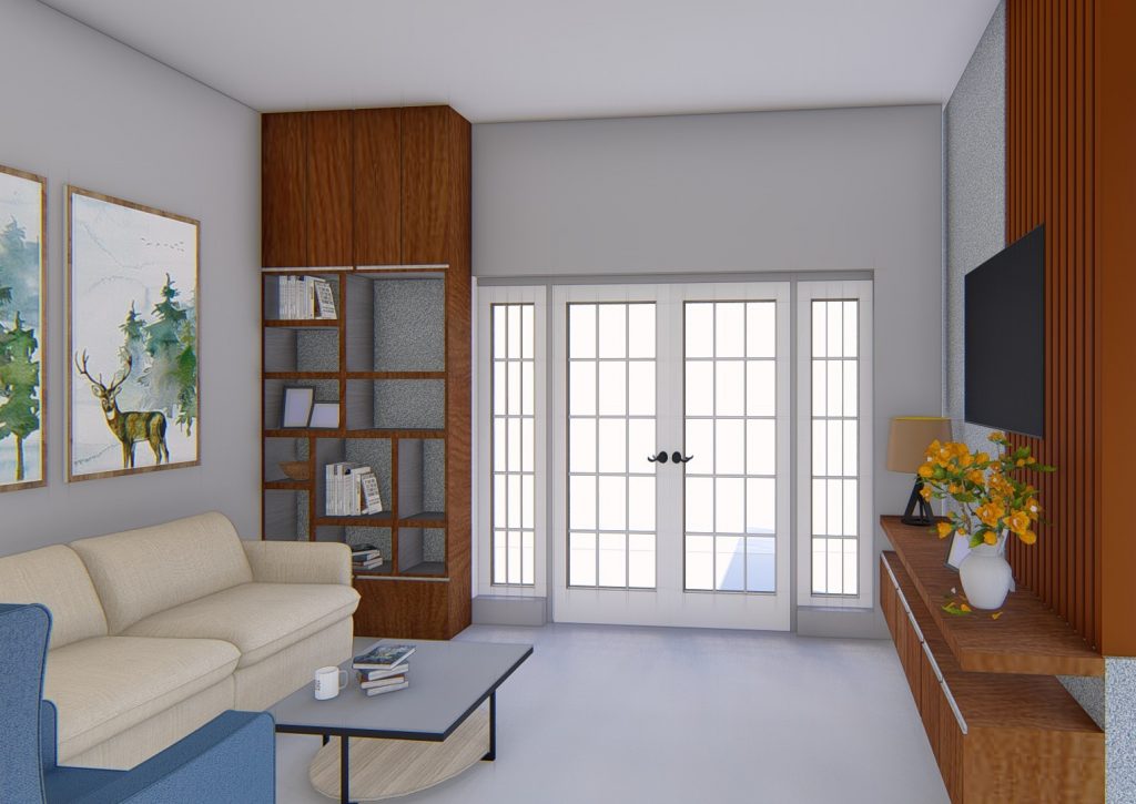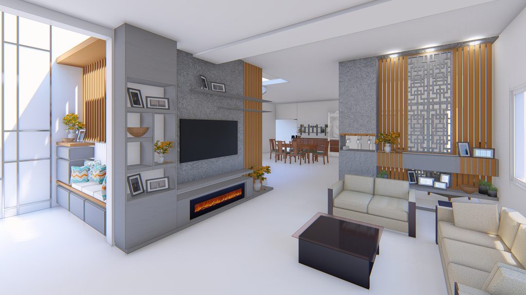 Executed in 2020, the Villa is located in Horamavu, Bangalore. The Villa is a 4BHK, with a view to a golf course. The Villa exudes a modern style of interiors emphasizing on the use of wooden textures with shades of gray and brown complementing the flooring and furniture.